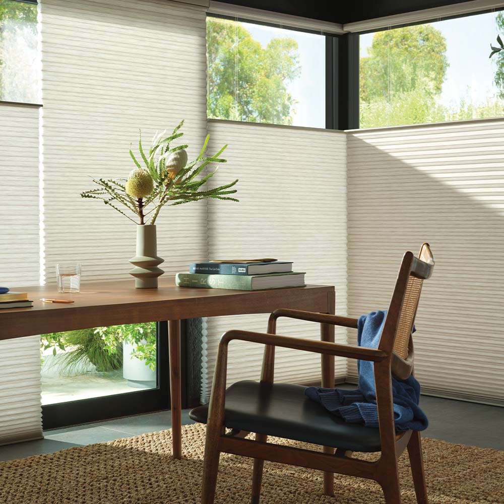 We manufacture our own Plantation Shutters in Charlotte, NC, and we offer the most advanced motorized shades from industry-leader, Hunter Douglas.