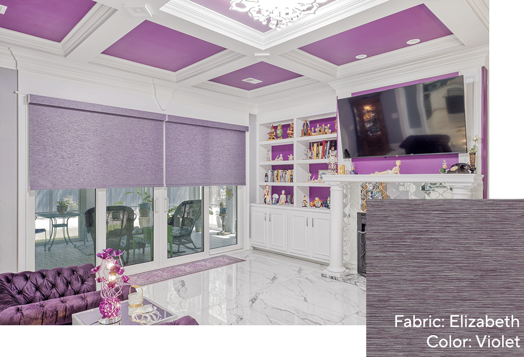 Some of the most unique window shades we’ve installed boast bright colors, patterns and textures. Carefully selecting color for window treatments can help your space stand out. Blue, Gold, Purple and Green are among the most popular bright colors for shades.