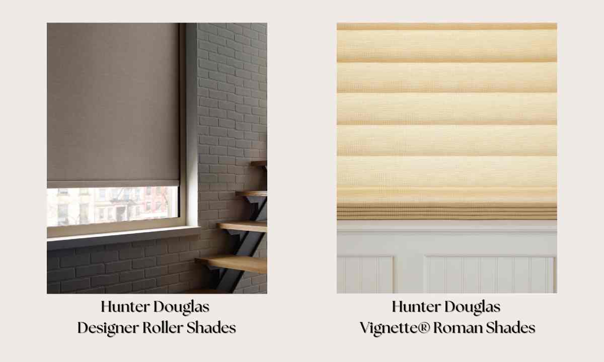 Hunter Douglas Vignette® Roman Shades vs Designer Roller Shades near Charlotte & Cornelius, North Carolina (NC) & North Myrtle Beach, South Carolina (SC)