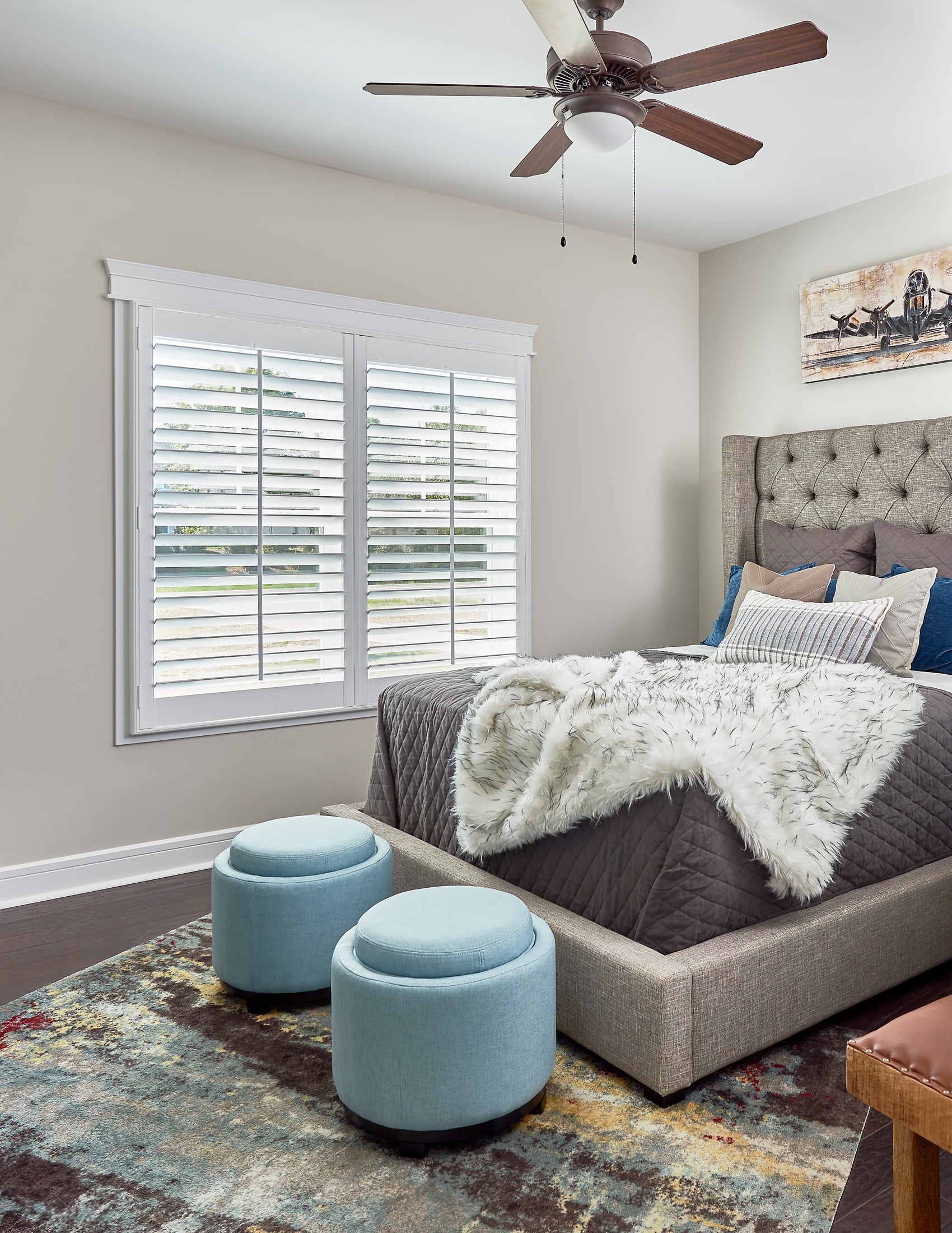• View Larger Image Child's bedroom with white shutters covering the window