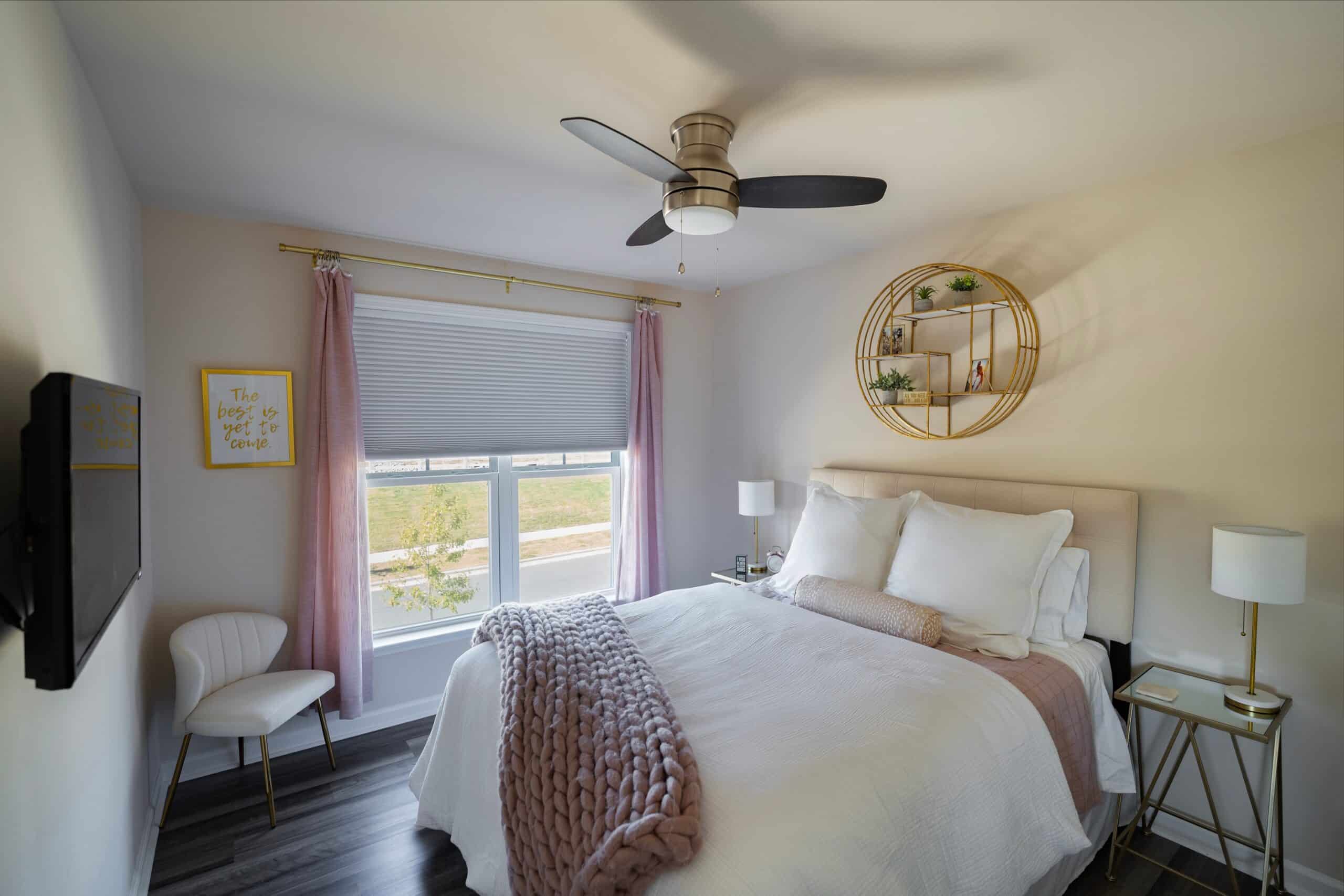 • View Larger Image White blackout honeycomb shade in a bedroom with pink drapery