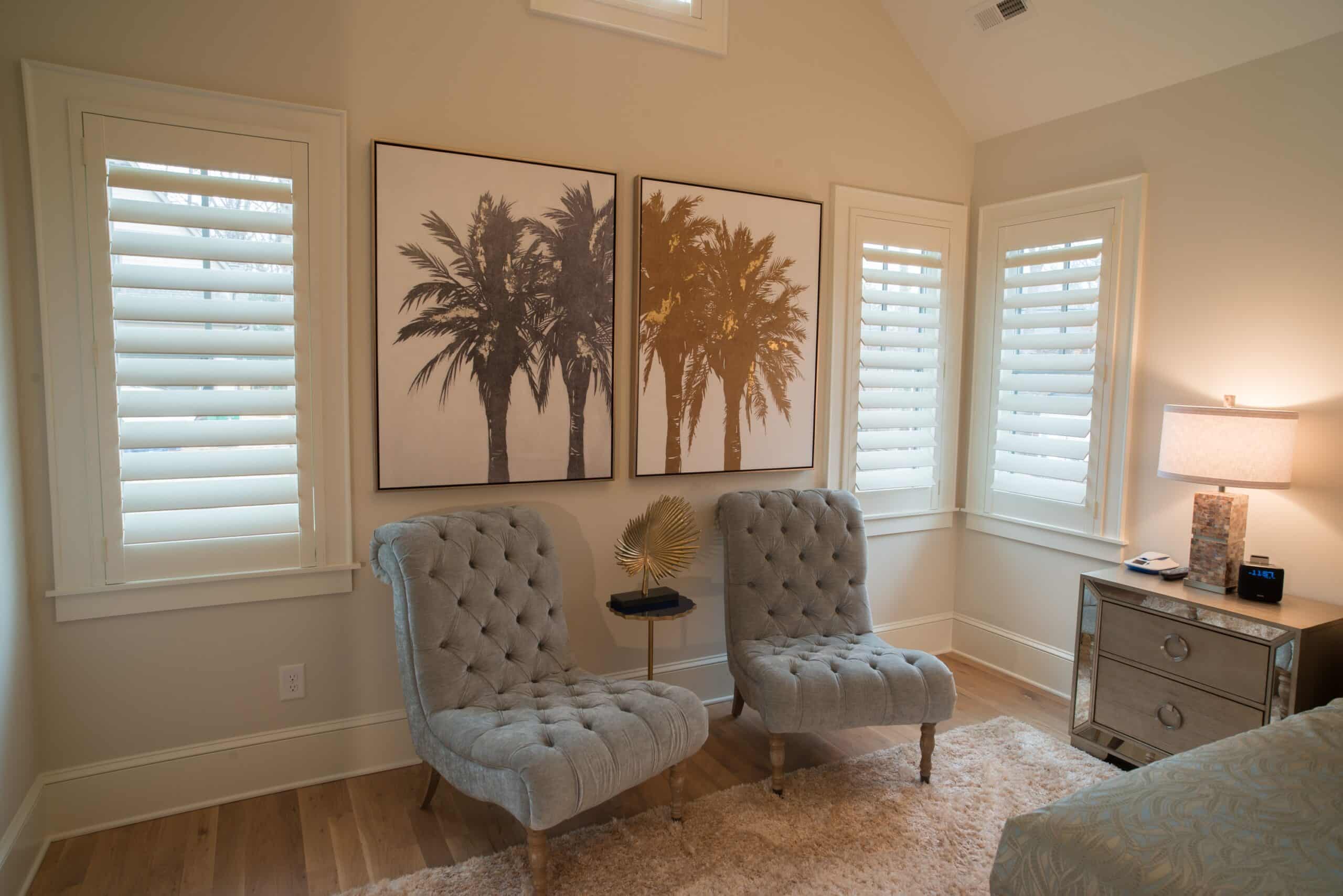 • View Larger Image Inside mounted shutters in a primary bedroom