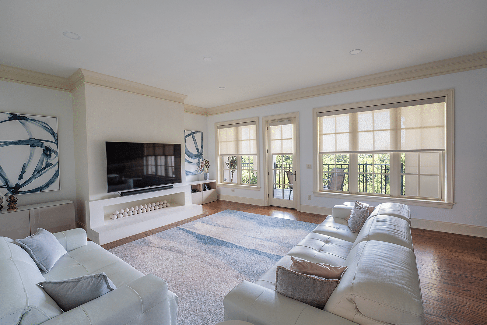 • View Larger Image tan light filtering shades on the doors and windows of a living room