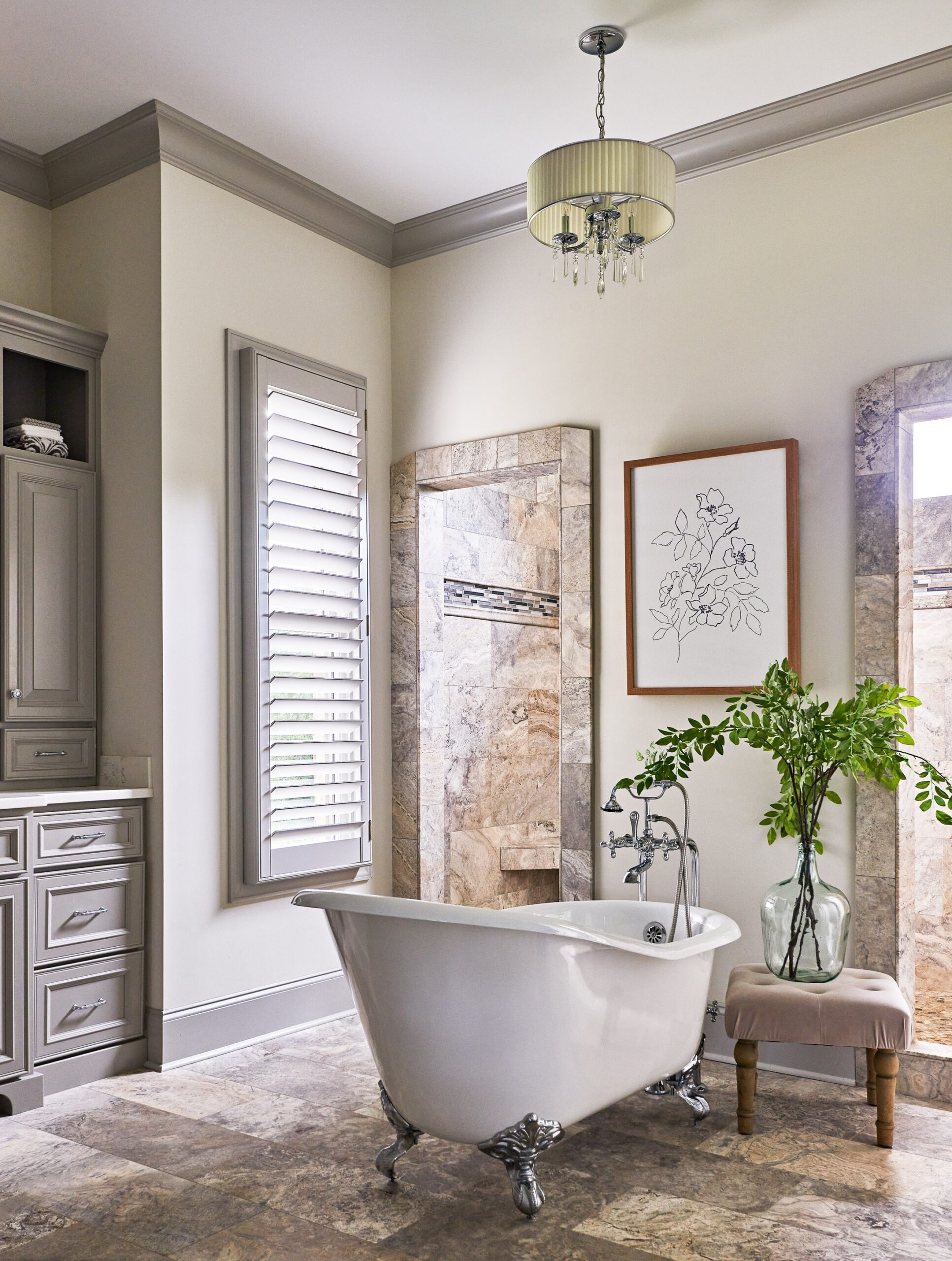 • View Larger Image Bathroom with a large clawfoot tub and a grey shutter on the window