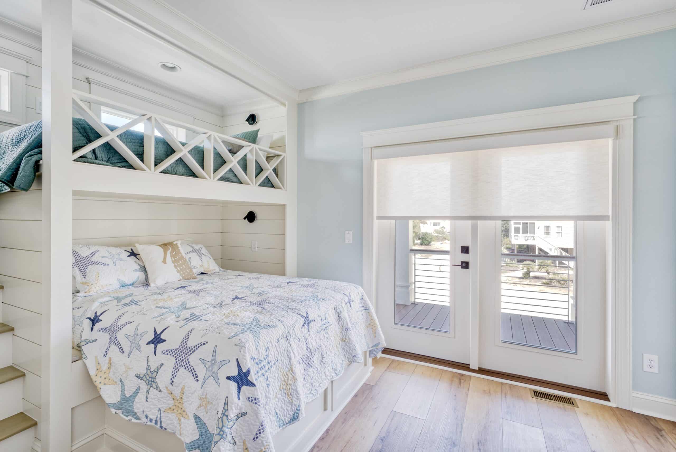 • View Larger Image Built in bunk beds with a coastal theme and textured roller shade over sliding glass door