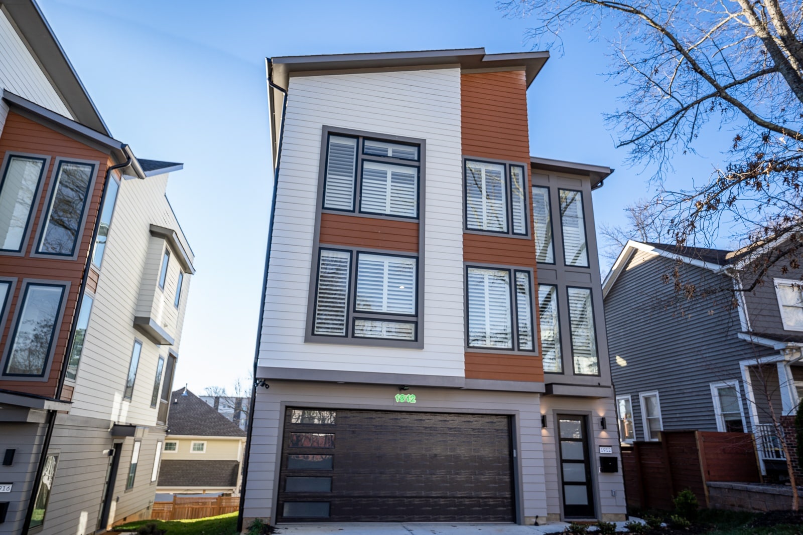 • View Larger Image Exterior view of a narrow townhome with shutters